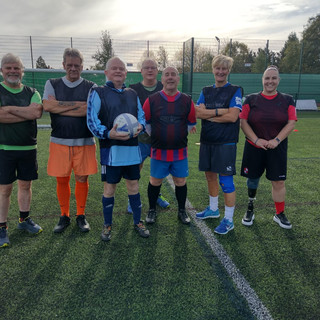 ….and come in The Fall they did at Ruskin on Monday. On a bright autumn morning SHWFC were graced with 28 players keen to get stuck into walking football.Chopper once again nobly refereed; and we even had spectators, including Eileen and Paul who, apparently enthused by what they saw, will be joining us out on the pitch soon to further expand our numbers!